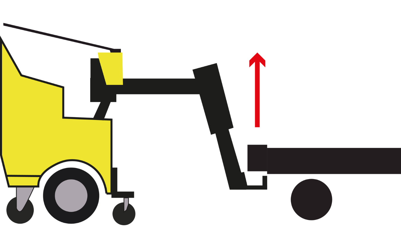 Este remolcador eléctrico industrial cuenta con un brazo con elevador hidráulico que permite giro de 360°, facilitando el posicionamiento automático del punto de arrastre en forma vertical, lo que mejora la ergonomía, precisión y seguridad operativa durante el manejo de carga pesada.
